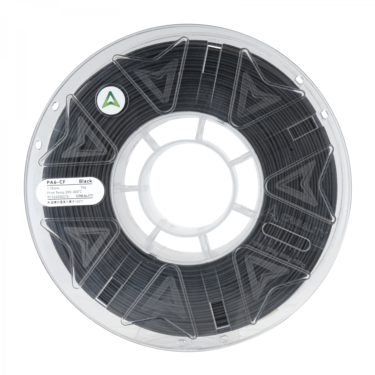 Filamento Hyper PA6-CF Creality para impressora 3D, reforçado com fibra de carbono, alta resistência ao impacto, desgaste e calor até 186 °C.
