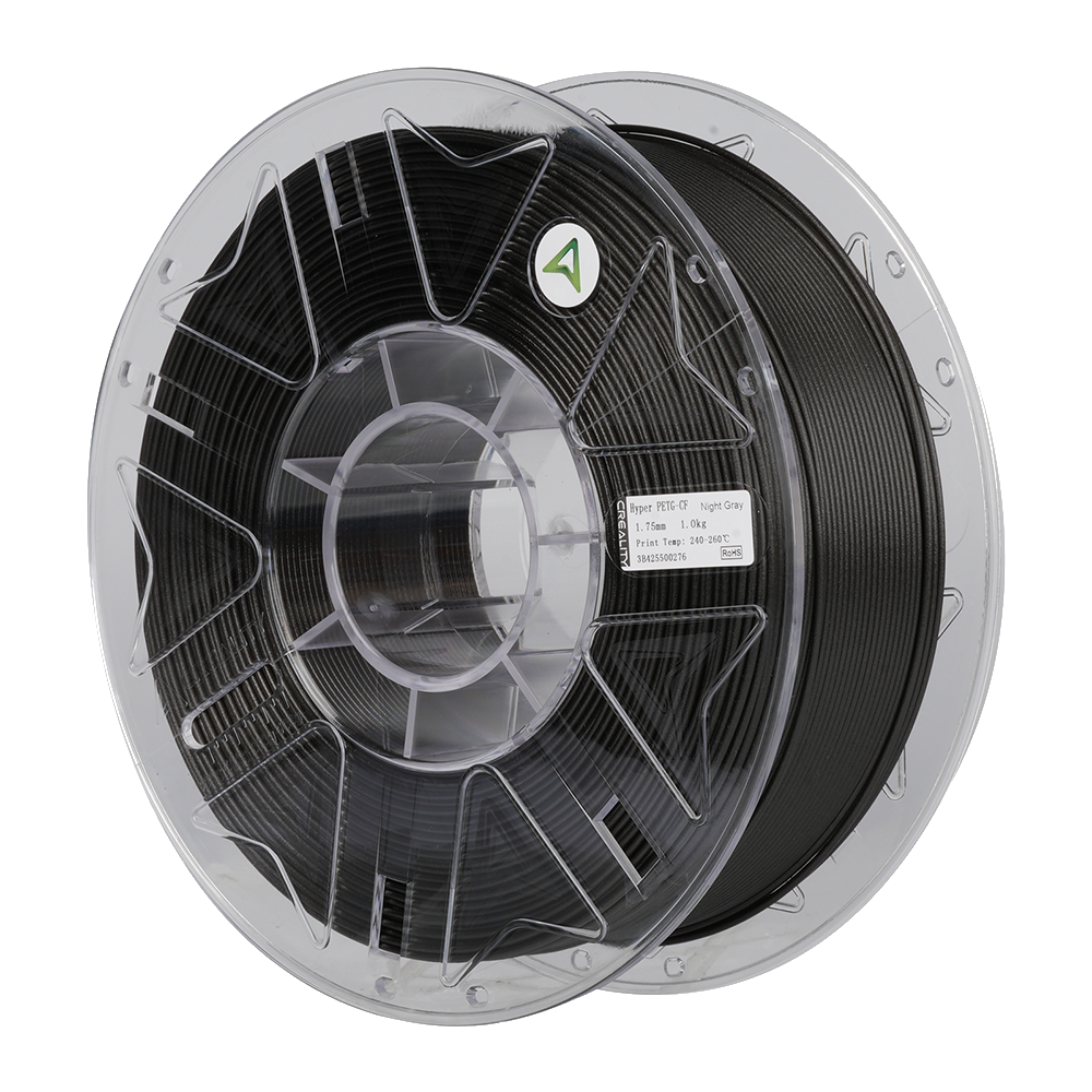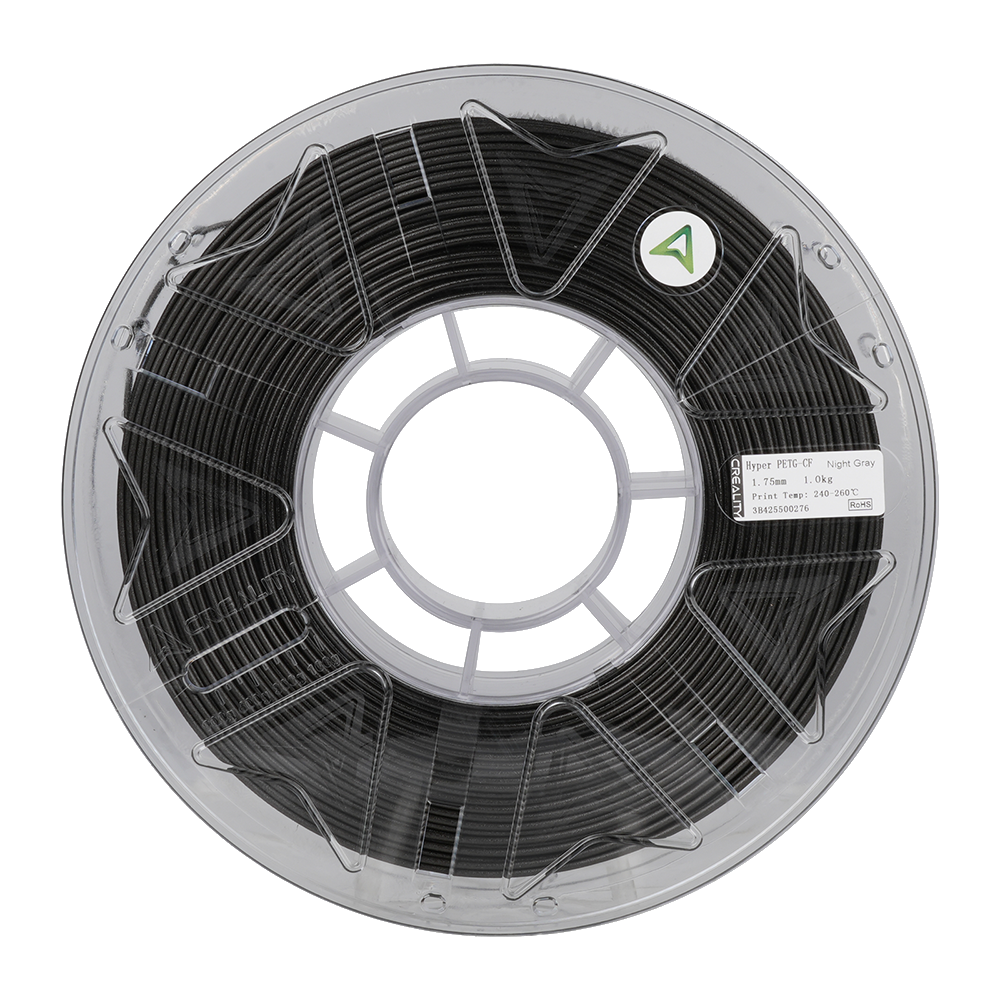 Filamento Hyper PETG-CF Creality desenvolvido para impressões 3D de alta performance, combinando a resistência química e térmica do PETG com reforço em fibra de carbono, resultando em peças duráveis, rígidas e com acabamento fosco premium.
