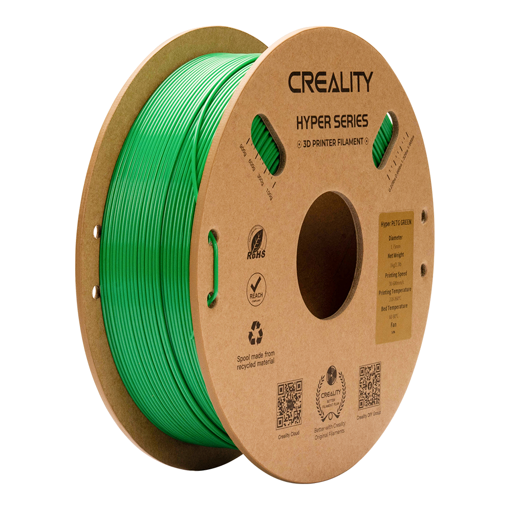Filamento PETG Hyper Creality para impressora 3D, desenvolvido para levar a impressão 3D a um novo patamar, unindo alta velocidade, resistência e qualidade.