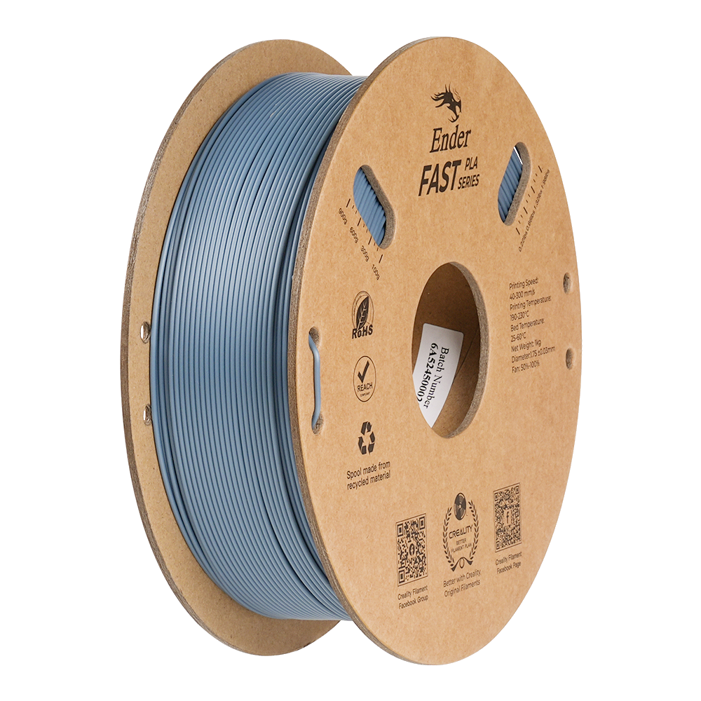 Filamento PLA Ender Fast Creality premium para impressoras 3D, desenvolvido para impressões em alta velocidade, maior resistência, qualidade e custo-benefício.
