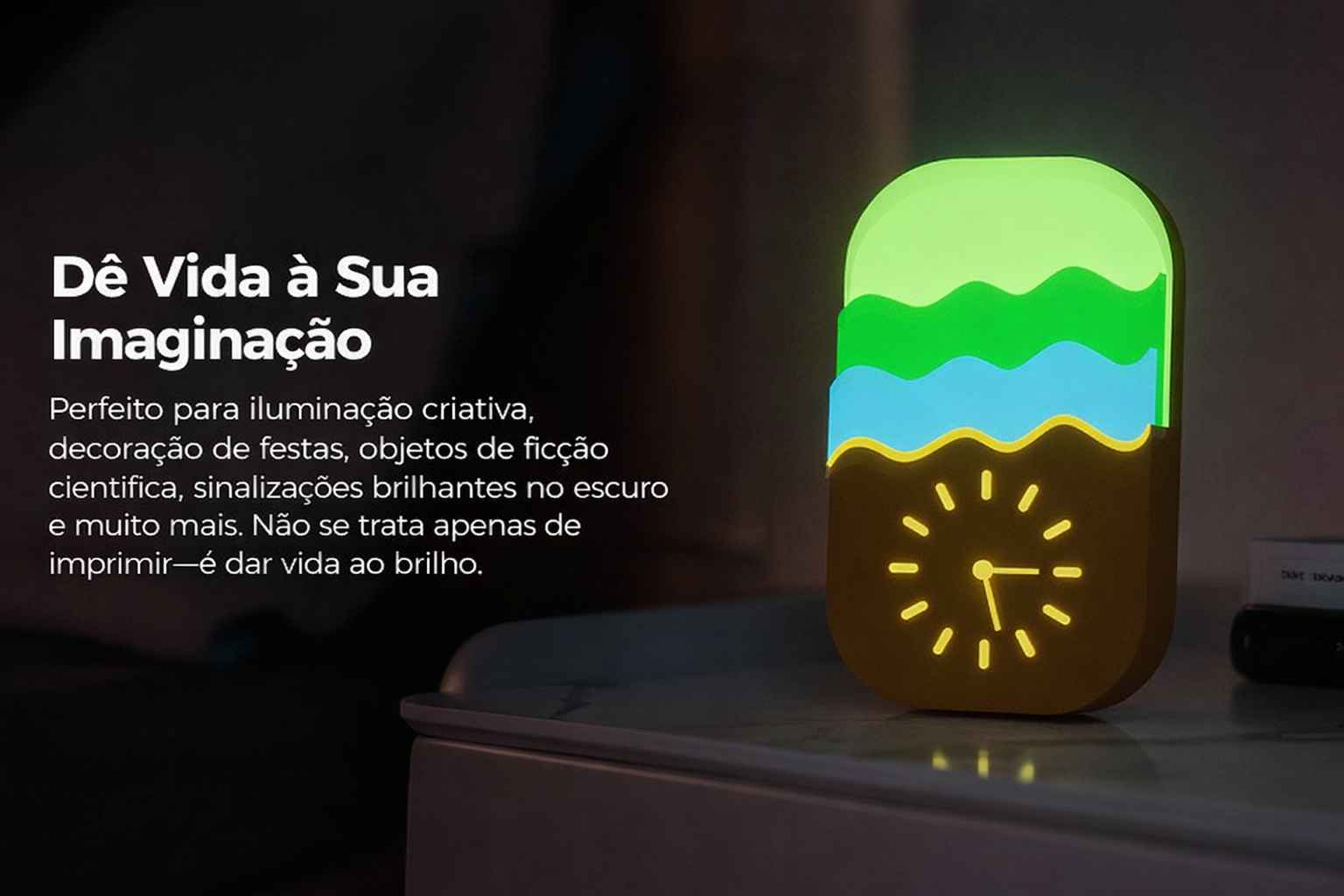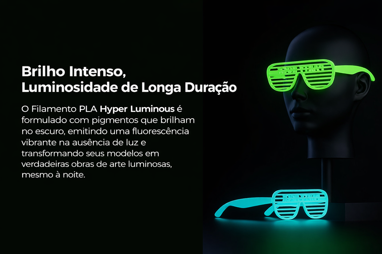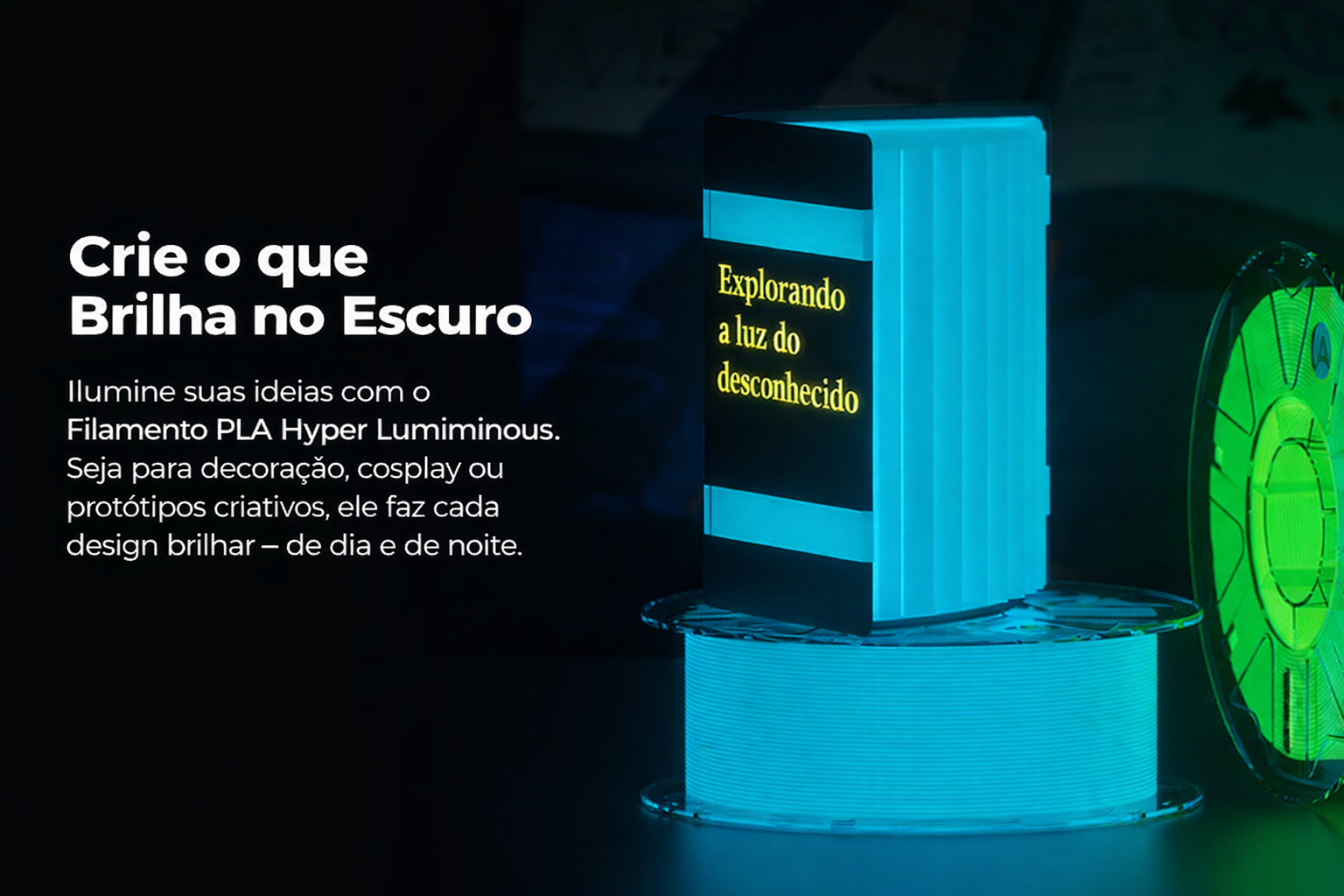 Produzido à base de PLA e enriquecido com pigmentos luminosos, o Hyper Luminous PLA absorve luz natural ou artificial e emite um brilho intenso e duradouro no escuro, transformando suas impressões em peças chamativas mesmo em ambientes com pouca iluminação.