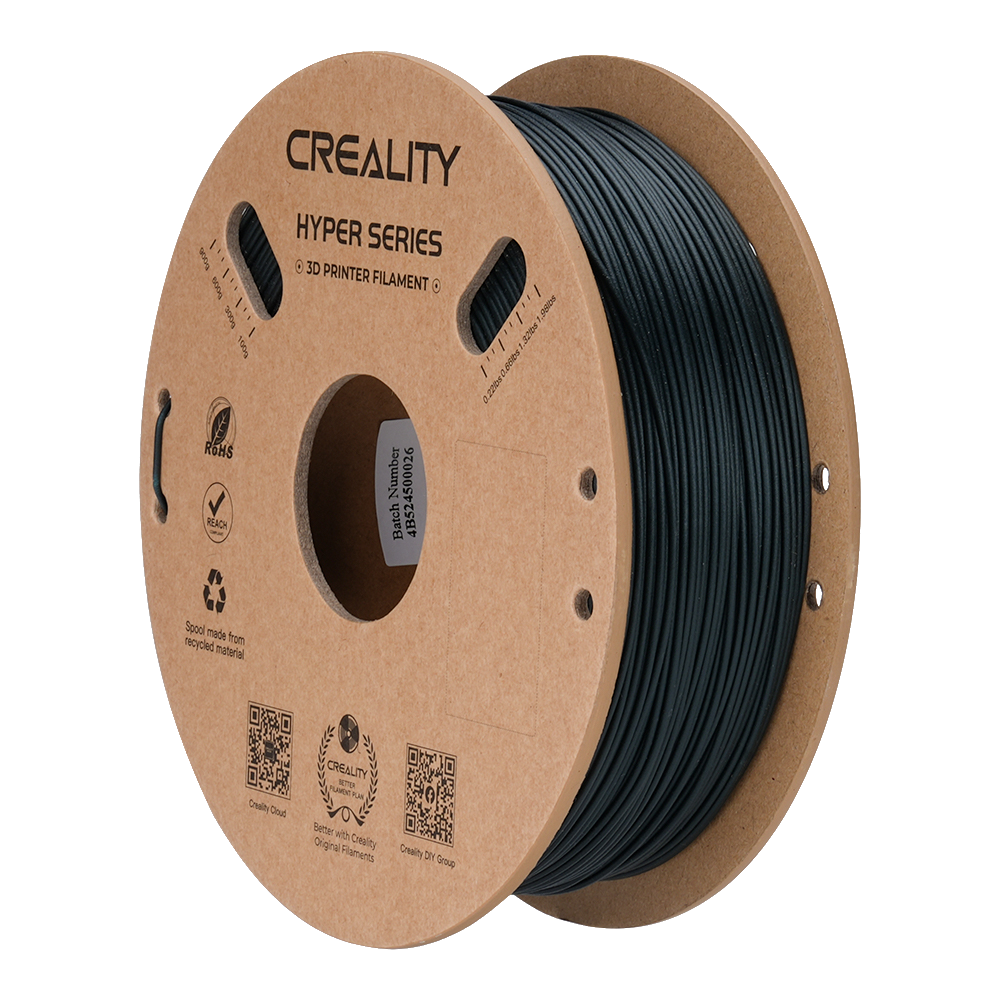 Filamento Hyper PLA-CF Creality desenvolvido para impressões 3D de alta velocidade, oferecendo alta resistência mecânica, excelente adesão entre camadas e acabamento fosco, com baixa visibilidade das linhas de impressão.