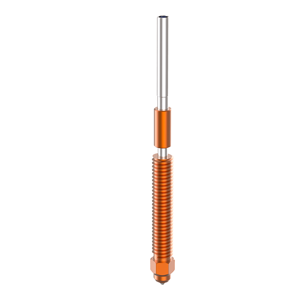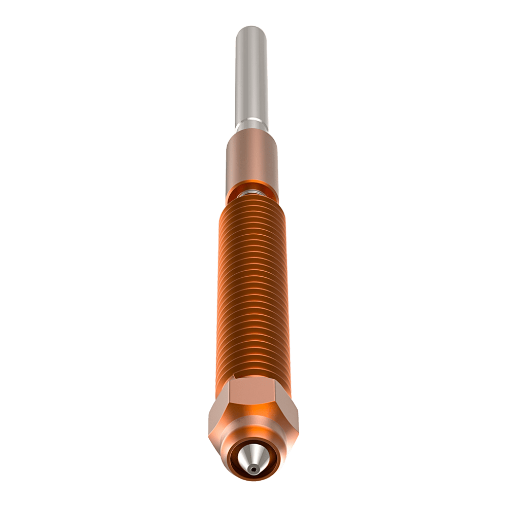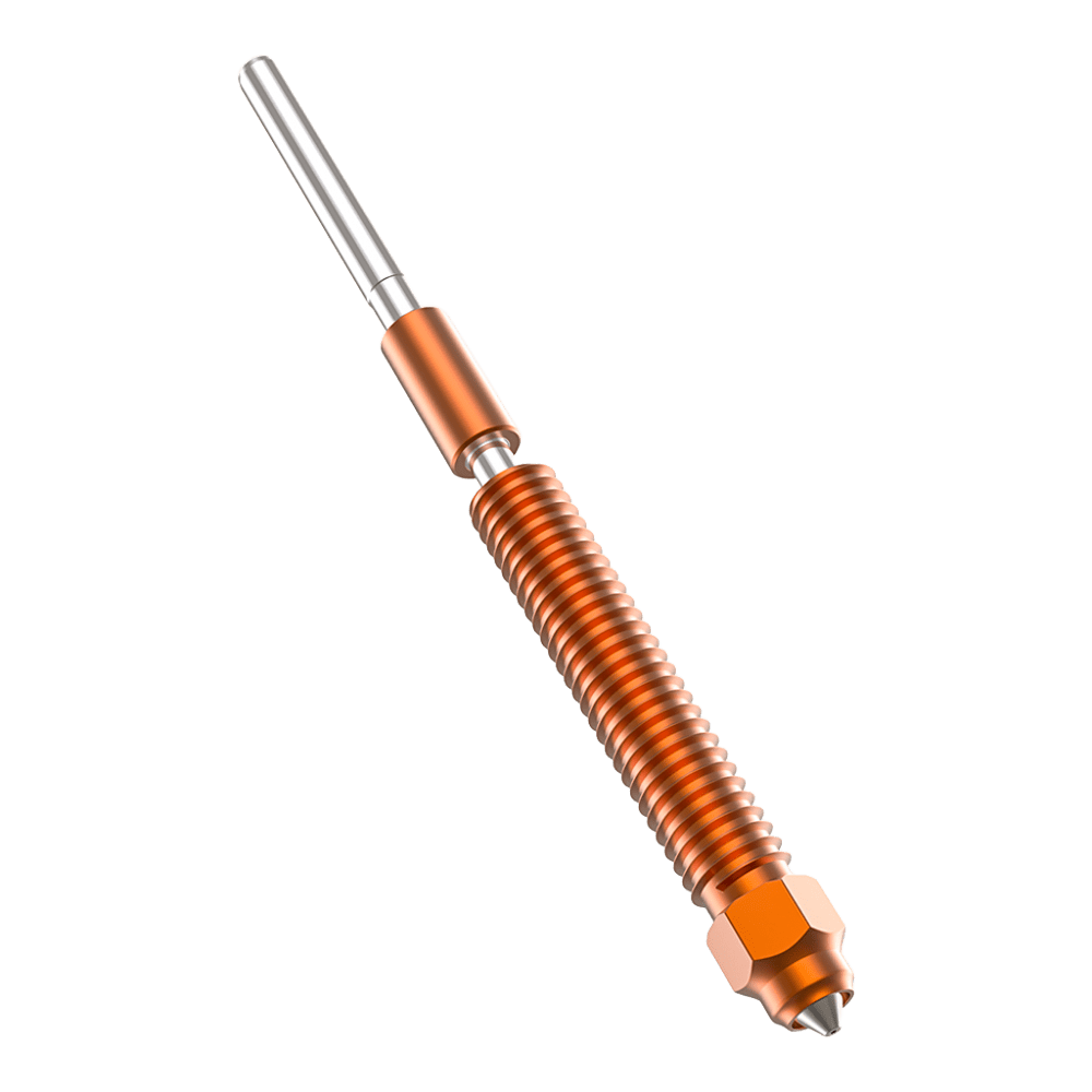 Construído com liga de cobre, liga de titânio e ponta em aço endurecido para suportar diferentes materiais de impressão.