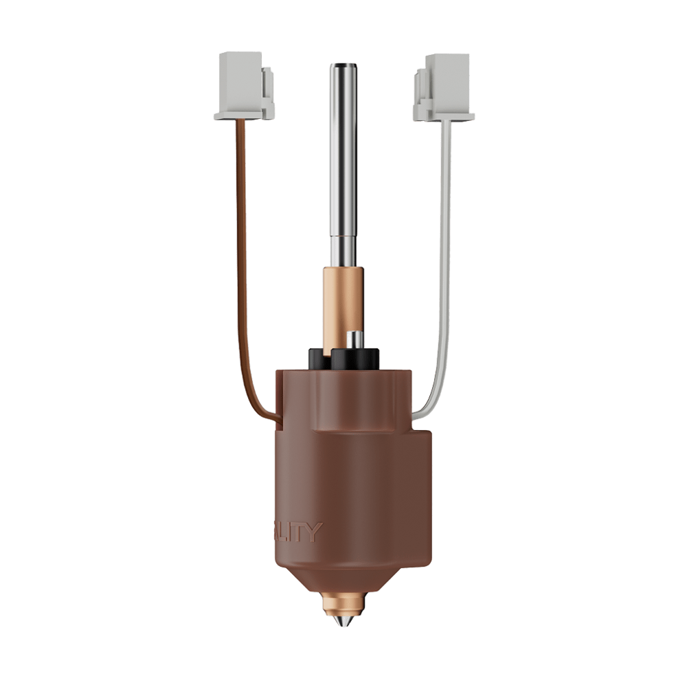 O hotend combina construção robusta com um design compacto, garantindo aquecimento rápido e desempenho estável para impressões de alta qualidade.