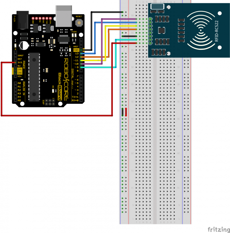 Para realizar as leituras da identificação das tags através do leitor RFID MFRC522, monte o circuito a seguir.